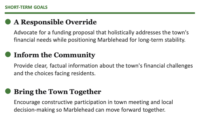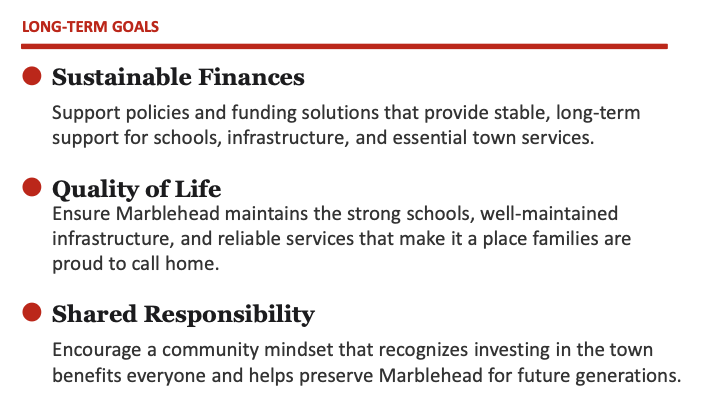 For Marblehead works to ensure our town has the schools, services, and infrastructure that make it a place we are proud to call home. We advocate for sustainable funding, responsible policies, good governance, and a civic culture that brings the community together to support Marblehead's future.