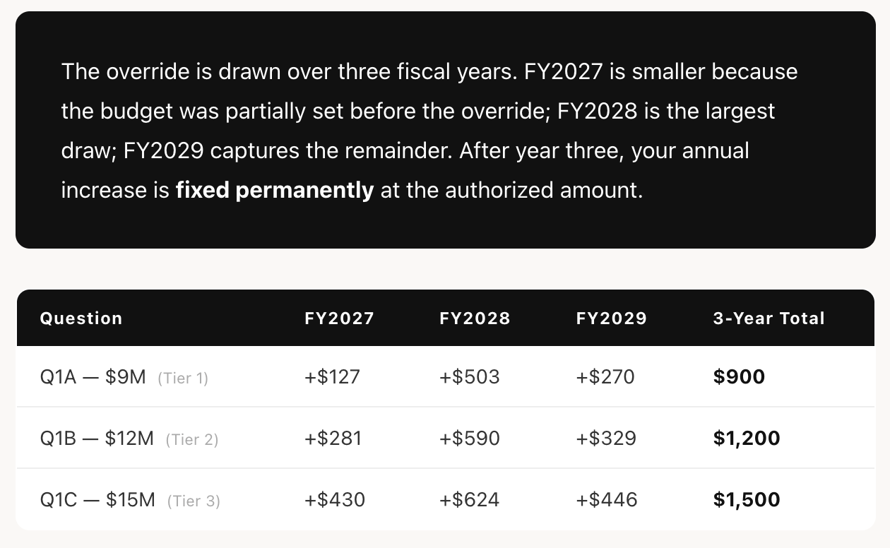 The Problem Compounds Each Year: A 'no' vote does not freeze the school budget. It guarantees a larger structural gap in FY28 and FY29 — requiring a more difficult and painful vote in the near future.
