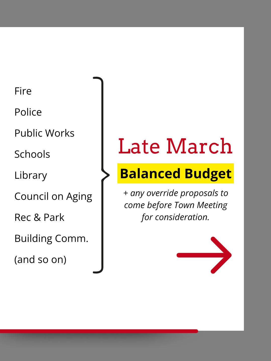NOTE: The School Committee has reviewed and approved its tiered proposal for school funding. The Select Board is still in the process of reviewing the full town-wide options and has not yet finalized the override question that will go to Town Meeting and the ballot.
